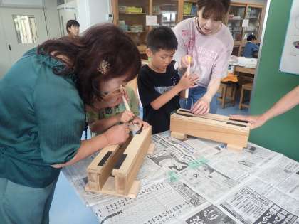 マイ・カラフルこまを作って・遊んで みんなでコーディネーション!! 公開日 2024/07/29 更新日 2024/07/29 今日のできごと 地域の皆様を講師にお迎えし、自分だけのこまを作って遊んで楽しみました。各テーブル1人以上の皆様が子どもたちに付き添ってくださり、穴を空ける作業も安心して取り組んでいました。紙でっぽうも楽しみました。頭を使い、体も動かし、貴重な体験となりました。
