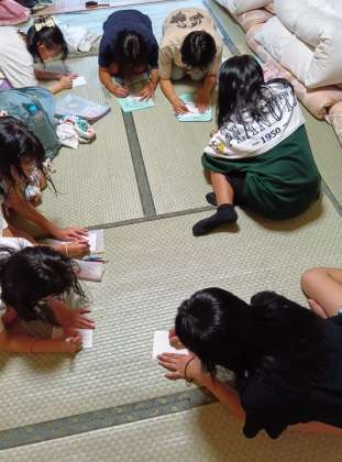 日光林間学園 公開日 2024/08/01 更新日 2024/08/01 今日のできごと 入浴を済ませ、今日一日を振り返ってはがきを書きました〜 大谷資料館がひんやりだったね〜とみんなで思い出して書いています〜