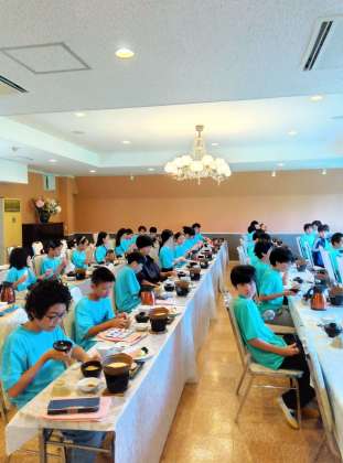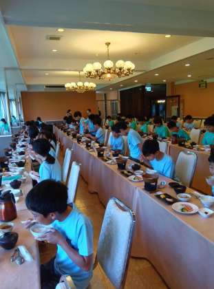 朝食をとりました。担当児童が一句紹介をし、拍手が響く朝のスタートでした〜