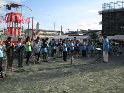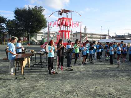 上用賀納涼盆踊り〜 公開日 2024/08/23 更新日 2024/08/23 今日のできごと コロナ渦を経て、5年ぶりに地域の盆踊りの開催です。 用賀小学校のキッズバンドのメンバーが、日頃の練習の成果を発表しました〜 みんなですてきな演奏を届けました〜
