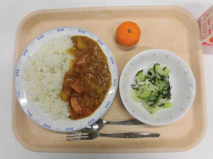 ポークカレー 牛乳 グリーンサラダ 冷凍みかん