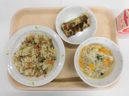きのこごはん 牛乳 ちくわの磯辺あげ そうめん汁