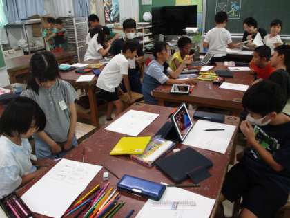 学校盛り上げマスコット〜4年 公開日 2024/09/07 更新日 2024/09/07 今日のできごと 学校生活を楽しませてくれるマスコットを考え、描く学習です。 子どもたちの思い、願いがマスコットになって、本当に実現したら・・・ とっても毎日がもっと楽しくなりそうですね・・・ あれこれ思いを巡らし、活動中でした〜