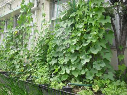 5月はじめに植えた壁面緑化のヘチマ、キュウリ、ゴーヤの苗が大きく育ち始めました。中でもキュウリはもう立派に収穫できるほどです。そろそろ薄井先生を隊長とする「キュウリ採りたい」が活動を始めます。採りたてのキュウリはみずみずしくて、きっとおいしいとですよ。野菜を育ててみると、土の大切さ、天候の大切さ、手入れの大切さがよくわかります。子どもたちも一緒に勉強していきます。