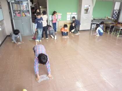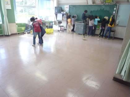 3/23 学校中が大掃除 公開日 2009/03/23 更新日 2009/03/23 校長室より いよいよ明日が修了式なので、今日は全校で大掃除です。一年生は、新1年生に使ってもらえるように一生懸命大掃除。3年生の学級では、椅子の脚についている、テニスボールのほこりとりです。椅子の脚についたほこりがせっかく掃除した床を汚すからだそうです。雑巾がけも嬉しそうでした。