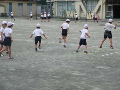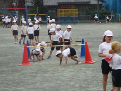 校庭に設置された場を使って、みんなでくぐったり、とんだり・・・ 楽しく活動していましたね・・・・