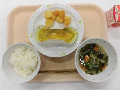 ごはん 魚の黄金焼き みそポテト すまし汁 牛乳