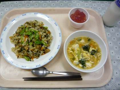 6/11 本日の給食 公開日 2012/06/11 更新日 2012/06/11 給食 〜今日の献立〜 磯おこわ 牛乳 かきたま汁 あじさいゼリー 梅雨の季節になり、きれいに咲いているあじさいの花を見かけるようになりました。そこで、今日のデザートは「あじさいゼリー」にしてみました。固まったサイダーゼリーの上に、バッドに固めて四角に切ったぶどうゼリーをのせました。 食材がとれたところ・・・ 閉じる 米…北海道 鶏肉…岩手県 鶏卵…青森県 こまつな…東京都(江戸川区) にんじん…千葉県 さやいんげん…千葉県 たまねぎ…群馬県 もやし…栃木県 長ねぎ…茨城県
