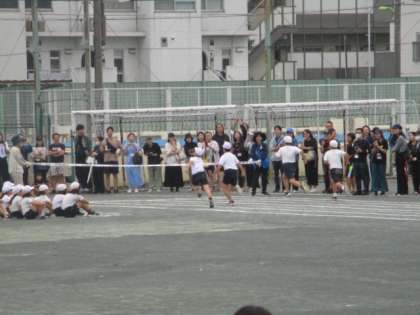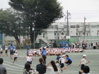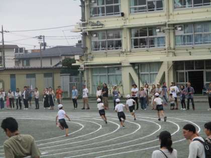 4年生の短距離走が始まりました〜 腕を前後に大きく振り、コーナーを意識して走ります〜
