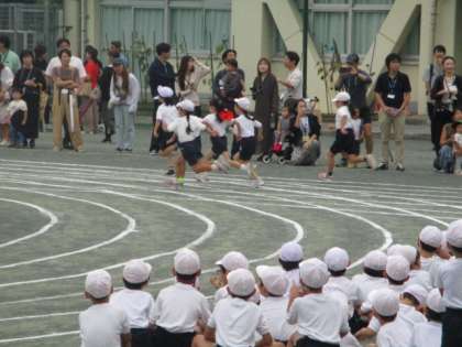 スタートに移動する子どもたちに、「頑張って〜」と声を掛けると、
