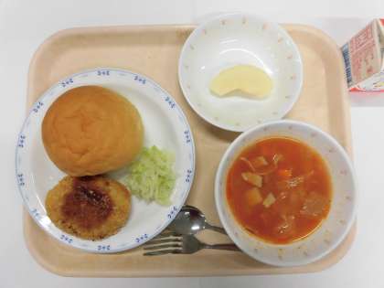 セルフコロッケバーガー ミネストローネ トキ(りんご) 牛乳