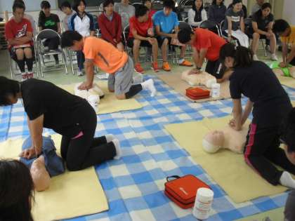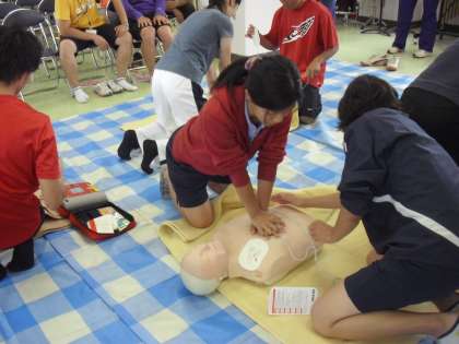 水泳指導に向けて、救命救急講習会を行いました。玉川消防署の方々に来ていただき、心肺蘇生法、AEDの使い方、その他の応急手当の方法を実習を通して学びました。本日は、3時間コースを全教員が真剣に学びましたが、水泳指導において絶対に事故を起こさない、未然に防ぐという高い意識で臨みます。