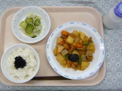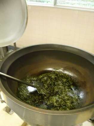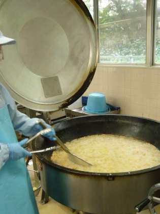 写真は、「のりの佃煮」と「揚げ煮」を作っている様子です。返ってきた食缶を見ると、ほとんど残菜はありませんでした。「おいしかったです。」と声をかけてくれる児童も多く、とてもうれしかったです。