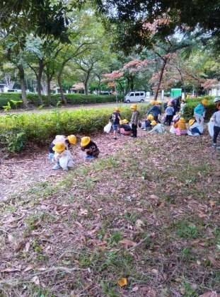 砧公園に着きました〜 みんなでどんぐり探しです。