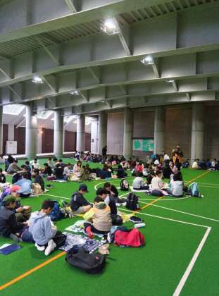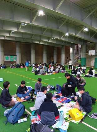 村の庭で昼食です。朝早くからのお弁当作り、ありがとうございました〜