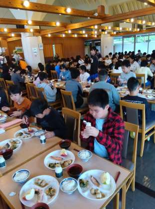 朝会を行い、朝食をとりました〜