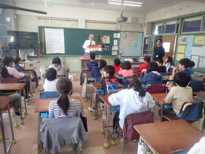 学校医の高橋先生が、4年生にはみがき教室をしてくださいました。歯垢がなぜできるのか、はみがきの大切さ、磨き残しのない磨き方の工夫に加え、歯を溶かす酸の強さを分かりやすく伝えるために、酢につけた卵をもってきてくださいました。3日間つけていると卵の殻が解けてしまうことなど、実物を見せながら説明してくださいました。