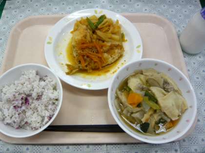 6/18 本日の給食 公開日 2012/06/18 更新日 2012/06/18 給食 〜今日の献立〜 ゆかりごはん 牛乳 あじの南蛮漬け きんぴらじゃがいも せんべい汁 毎月19日は、食育の日です。今月は19日がなかよしタイムなので、今日の献立を食育の日のメニューにしました。用賀の学び舎で一緒に勉強している、京西小学校と用賀中学校と同じ献立です。 今日の献立の「せんべい汁」は、青森県八戸市の郷土料理で、南部せんべいが入っています。 食材がとれたところ・・・ 閉じる 米…北海道 鶏肉…岩手県 あじ…タイ 小松菜…東京都(江戸川区) じゃがいも…長崎県 にんじん…千葉県 長ねぎ…埼玉県 しょうが…高知県 さやいんげん…千葉県 大根…青森県 ごぼう…青森県
