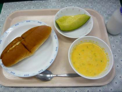 今日のスープは、キャロットポタージュでした。にんじんには、にんじんには、目に栄養をあたえてくれたり、病気を予防してくれる「ビタミンA」がたくさん入っています。キャロットポタージュには、他にも、たまねぎやセロリ、カルシウムいっぱいの牛乳が入っていました。