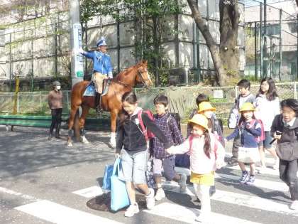 今年度も、お馬さんは用賀小学校の交通安全を守ってくださいます。