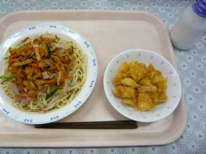 6/26 本日の給食 公開日 2012/06/26 更新日 2012/06/26 給食 〜今日の献立〜 冷やし中華 牛乳 じゃがいもの甘辛煮 夏が近づき、暑く感じる日も増えてきました。今日の献立は、暑い日にぴったりな「冷やし中華」でした。きちんと食べて、暑い夏も元気に過ごしてほしいです。 食材がとれたところ・・・ 閉じる じゃがいも…長崎県 きゅうり…群馬県 しょうが…高知県 にんじん…千葉県 もやし…群馬県