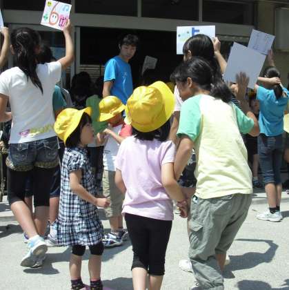 用賀小学校の特色の一つ「なかよしタイム」は月に1回、同じ班で実施します。次回の7月も楽しみにしています。
