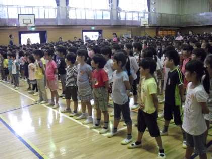 今日の全校朝会では言葉の大切さについての話をしました。先日の休み時間に、2年生の男の子が鉄棒の練習をしていて、周りの子どもたちから「上手だね。すごいね」と言われて、ますますがんばっていた様子や、上級生と下級生がぶつかってしまった時に、上級生が「ごめんね。大丈夫?」と言ったことで下級生の気持ちが落ち着いた話をしました。やさしい言葉はやさしい心を表しています。言葉は自分の心を写す鏡です。これからも言葉を大切にし、用賀小学校の一人一人が、楽しく充実した学校生活を送れるようにしていきたいと考えています。