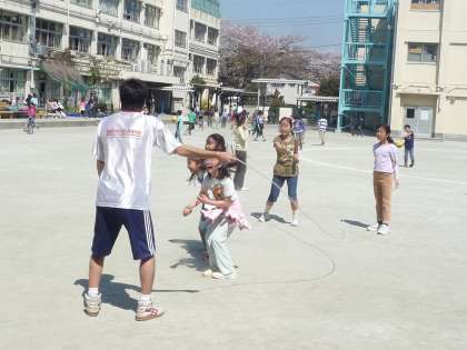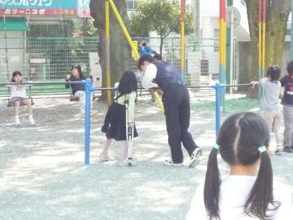 4/10 先生と一緒・・楽しい休み時間 その1 公開日 2009/04/10 更新日 2009/04/10 校長室より 用賀小学校の休み時間は校庭がいっぱいです。朝は8時15分から、中休みは10時25分から、昼休みは1時5分からですが、いつもたくさんの子どもたちが遊んでいます。 1年生は、来週からですから、校庭がちょっとすいているかな・・・? 子どもたちの遊びの輪の中には、先生がいます。先生方もできるだけ子どもたちと遊ぶのが用賀小学校の特色のひとつともいえます。