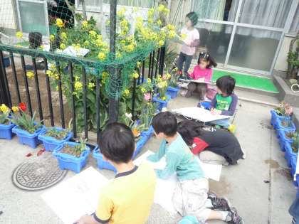 4/14 春を感じよう 公開日 2009/04/14 更新日 2009/04/14 校長室より 春というよりも、初夏の日差しがまぶしいこの頃ですが、授業では「春」がたくさんです。 2年生は、図工の学習で、春の花をよく見て大きく描いています。 3年生は、新学習指導要領への移行として行なう授業です。「身近な自然の観察」という単元で、区民農園での自然観察です。 よく見てみると、学校中花でいっぱいです。麦の穂に花が咲いているのをご存知ですか・・・?