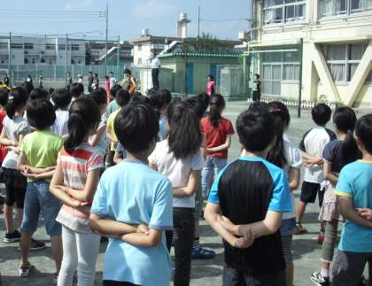 今日の全校朝会では、宮城県の南三陸町に行き、東日本大震災でお亡くなりになられた方々のご冥福をお祈りしてきた話をしました。私たちは、普段と変わらず家族と過ごせることや、普通に学校生活を送れていることを改めて幸せに感じなくてはいけません。そして、用賀小学校がいつも真剣に取り組んでいる避難訓練がどんなに大切なことなのかをつくづく感じて帰ってきました。私たちは、3月11日を忘れることなく、自分自身でできることを、これからもしっかり取り組んでいきます。