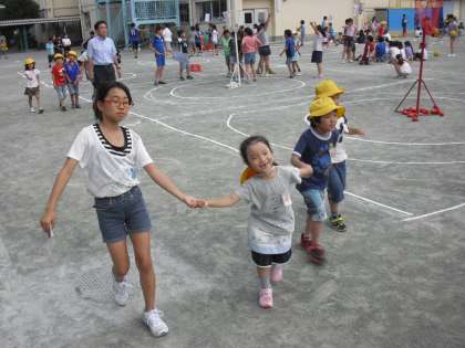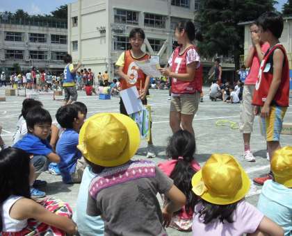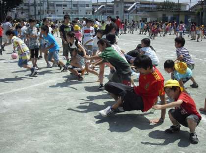今年度2回目のなかよしタイムです。1年生から6年生までの縦割り班で昼休みに遊びます。6年生はリーダーとしての意識がとても高く準備も万端です。ゲームの方法もていねいに説明をして実際にやって見せて、さぁゲーム開始です。どの子も楽しめるゲームを考えるのはなかなか難しく大変なことです。今日の6年生も見事、子どもたちの期待に応えてくれて、昼休みの校庭は笑顔がたくさん溢れていました。用賀小学校の特色の一つであるなかよしタイムは、月に1回同じ班で行います。