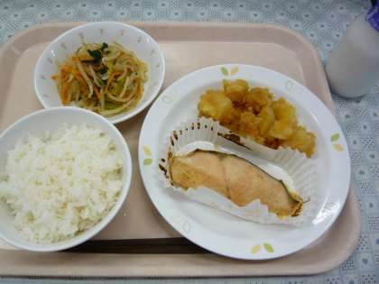 今日は、魚を味噌やマヨネーズで作ったたれにつけて焼きました。味噌は、今日も5年生が作ってくれた味噌を使いました。魚が苦手な児童も多いようですが、おいしいとよく食べてくれていました。