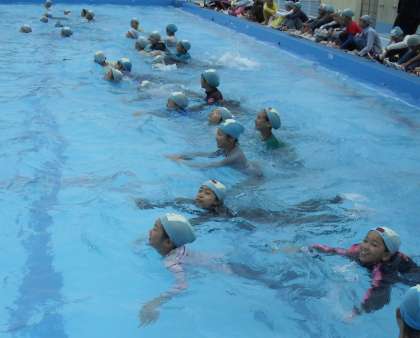 今日の3・4時間目、6年生の水泳授業は着衣泳です。着衣したまま入水し、走ってみたり泳いだり、浮いたりする学習をしました。実際に上着を着たり、ズボンをはいたり、靴のまま水に入ると重くて窮屈でとても動きにくくなってしまいます。