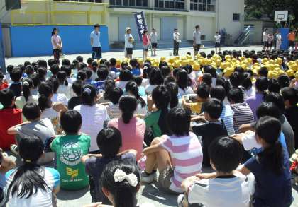 今日の避難訓練は、中休みにランチルームから火災が発生したため、校庭に避難するという設定で行いました。中休みですので校庭で遊んでいる子どもが多くいました。緊急のサイレンの音とともに、子どもたちは瞬時に反応して、しゃがむ姿勢をとり、放送の指示をよく聞いていました。集合までの時間と真剣な態度は合格ですが、先生方に声掛けされなくても、緊急のサイレンが鳴ったら全員の子どもが動きを止める習慣を身に付けさせたいと思っています。前回の避難訓練での宿題であった、全員がハンカチで鼻や口をふさぐことも数人の子どもができていませんでした。今回も不合格を伝えましたが、全員の命を守るために、今後も避難訓練には厳しく臨みます。