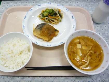 今日のさばのピリ辛ソースかけとみそ汁には、5年生が作ってくれた味噌を使いました。さばのような青魚には記憶力をよくしてくれると言われているDHAという栄養素がたくさん入っています。魚が苦手な児童も多いようですが、頑張って食べて欲しいです。