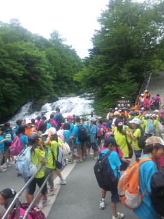ハイキング無事終了。竜頭の滝を見学しています。