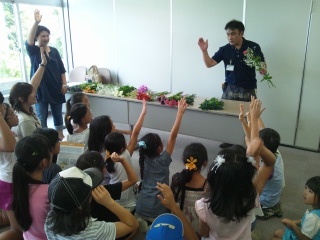 今年も世田谷花き市場の協力を得て開催されたスマイルスクールの「花育」。