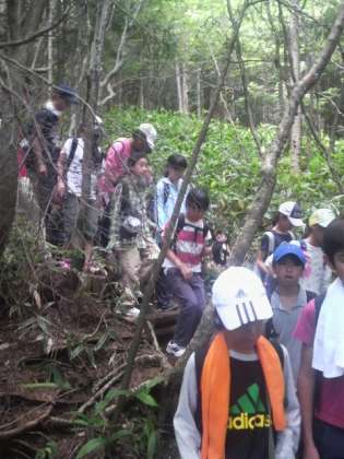 山王峠を下り、光徳牧場を目指してます。すごい段差を頑張って降りています。