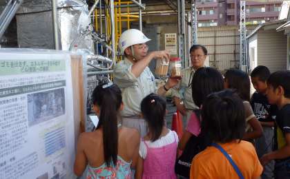 以前は工場で出た木くずをお金を払って引き取ってもらっていましたが、近年、清水建設では、木くずをバイオマスエネルギーに変える機械が開発されたことも紹介されました。生ゴミもエネルギーに変えることができるので、将来的にはマンションを建設した際に一緒に建て、そのマンション内で使われるエネルギーをまかなえるかも・・・という、未来のエコ建物について夢を膨らませました。