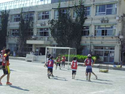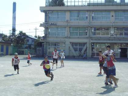 8/3 スマイルスクール真夏のハンドボーラー 公開日 2012/08/07 更新日 2012/08/07 今日のできごと 暑い日差しを浴びながら,5・6・中学生総勢16名の子供たちが今年もハンドボールを行いました。 ハンドボールの基本のパス・シュートを行い、最後は5対5のゲームをしました。昨年度を経験している6年生の動きはとても上手で、白熱したゲームになりました。 5年生は、是非来年も参加を待っています!! 協力をして下さった保護者の方々ありがとうございました。