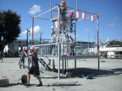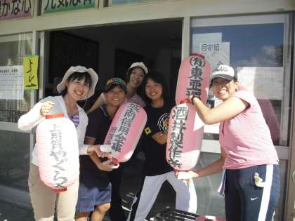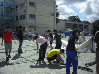 上用賀納涼盆踊り大会は、2日間で4000人を超える来校者があり、盛大のうちに終了しました。今日は後片付けです。日曜日にもかかわらず、早朝8時前から、たくさんの人が続々と集まってきました。やぐら、提灯、テント、机、いす、家庭科室の物品など、様々なものががみるみるうちに片付いていきます。