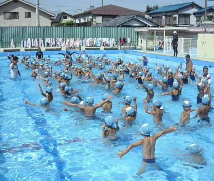 今日は、夏季水泳教室の最終日です。今年は猛暑日が続き絶好のプール日和でした。もう子どもたちも私たちも真黒です。昨日の検定日には、低学年172名、中学年151名、高学年118名と多くの子どもたちが集まり、進級を目指してがんばっていました。小学生のこの時期は泳げば泳ぐほど上達します。今年も毎日、プールには10人以上の指導教員が入り、級別指導を行いましたが、子どもたちの成長を見ることができるのが私たちの最大の喜びです。ご家庭での健康管理にも感謝申し上げます。ありがとうございました。