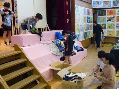 着々と準備が進んでいます。5年生からは、図工の作品と家庭科の作品も出品します。展示準備を先生といっしょにしました。