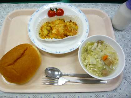 9/5 本日の給食 公開日 2012/09/05 更新日 2012/09/05 給食 〜今日の献立〜 ミルクパン 牛乳 鮭のポテサラ焼き ミニトマト ABCスープ 今日は、新メニューの「鮭のポテサラ焼き」でした。鮭の上にポテトサラダとチーズをのせて、オーブンで焼きました。魚は、苦手な児童も多いですが、栄養いっぱいなのできちんと食べて欲しいです。 食材がとれたところ・・・ 閉じる 鶏がら…青森県 豚骨…青森県 鮭…チリ じゃがいも…北海道 にんじん…北海道 きゅうり…長野県 たまねぎ…北海道 ミニトマト…青森 セロリ—…長野県 キャベツ…群馬県 しめじ…長野県 パセリ…北海道