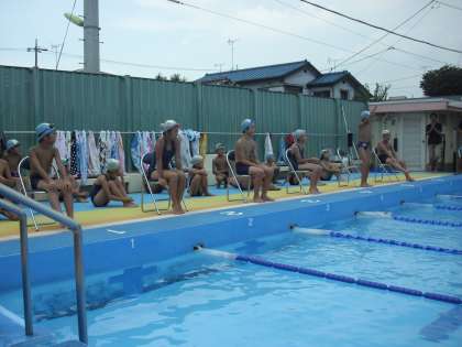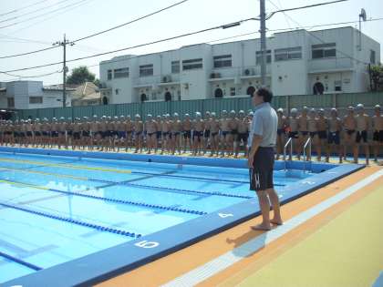 9/8 6年生水泳記録会ー1 公開日 2012/09/08 更新日 2012/09/08 校長室より 今日は6年生の水泳記録会です。好天に恵まれ絶好の水泳日和です。用賀小学校の6年生はスイミングでの練習もあると思いますが、学校のプールで上達した子が多いのは嬉しい限りです。卒業までに全員が25メートルを泳げるようになってほしい、という担任の願いが込められています。保護者の皆様方の応援もあって充実した水泳記録会ができました。ありがとうございました。