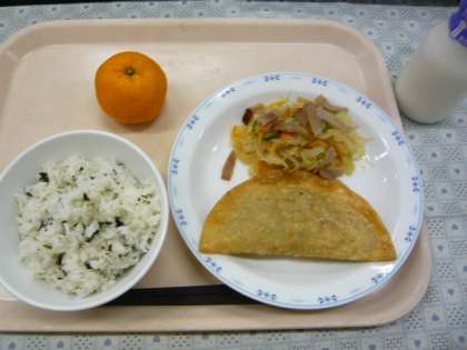 9/12 本日の給食 公開日 2012/09/12 更新日 2012/09/12 給食 〜今日の献立〜 わかめごはん 牛乳 ジャンボぎょうざ 春雨サラダ くだもの(冷凍みかん) 今日は人気メニューの「ジャンボぎょうざ」でした。写真は、ジャンボぎょうざを作っている様子です。 食材がとれたところ・・・ 閉じる 米…北海道 豚ひき肉…静岡県 しょうが…高知県 キャベツ…群馬県 長ねぎ…青森県 にら…栃木県 にんにく…青森県 きゅうり…群馬県 にんじん…北海道 たまねぎ…北海道 冷凍みかん…和歌山県