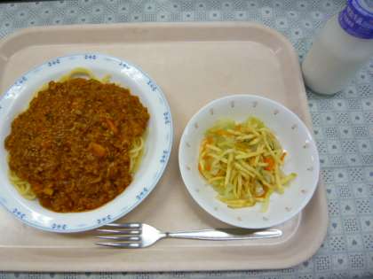 9/18 本日の給食 公開日 2012/09/18 更新日 2012/09/18 給食 〜今日の献立〜 スパゲッティミートソース 牛乳 じゃがいものハニ—サラダ 今日のサラダは、「じゃがいものハニ—サラダ」でした。千切りにしたじゃがいもを油で揚げたものが入っています。人気のサラダです。 食材がとれたところ・・・ 閉じる 豚ひき肉…静岡県 じゃがいも…北海道 たまねぎ…北海道 セロリ—…長野県 にんじん…北海道 ピーマン…茨城県 パセリ…長野県 キャベツ…群馬県