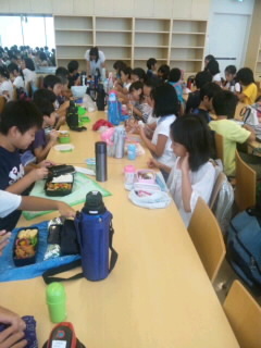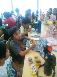 ガスの科学館の学習を終えて、お楽しみのお弁当タイムです。この後、水道歴史館に向かいます。
