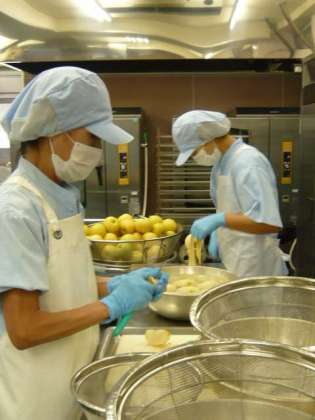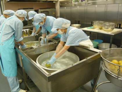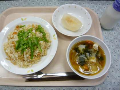 今日のくだものは、今が旬の「梨」でした。梨には、疲れをとってくれる栄養素「アスパラギン酸」が入っています。きちんと食べて、元気に過ごしてほしいです。
