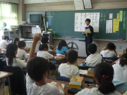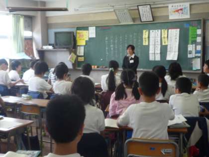 用賀小学校では、今年度も教師養成塾生が2名来ています。5年生と6年生について1年間教師になるための勉強をします。